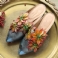 Blommor Retro Almond Toe Chunky Heels Tofflor 35-41