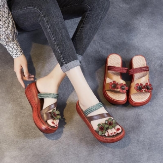 Dam Sommar Läder Hollow Out Casual Clip Toe Boots Sandaler