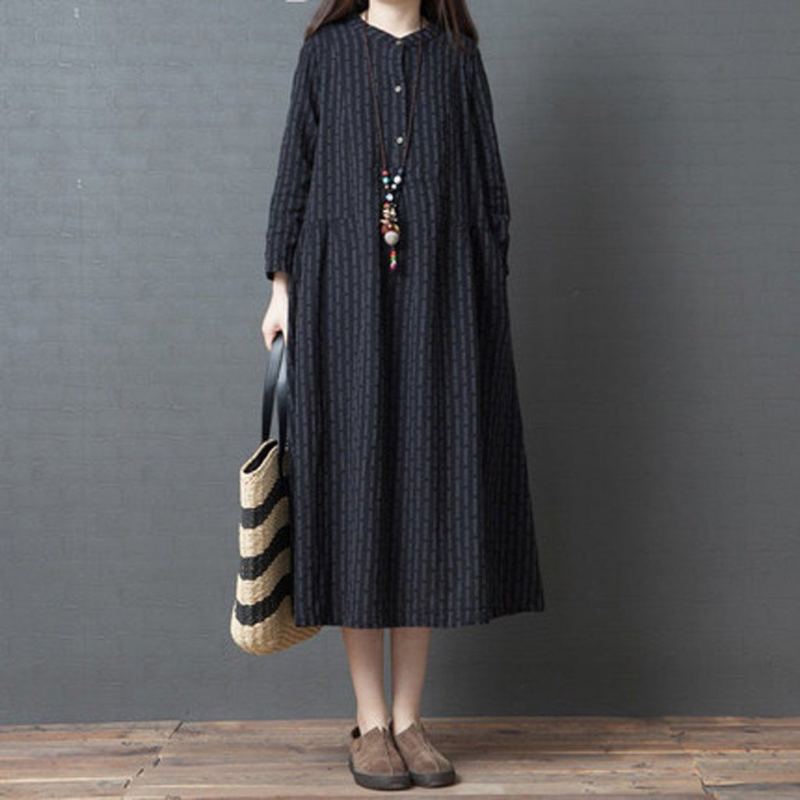 Höstens Lös Ramie Bomullslinne Långärmad Klänning