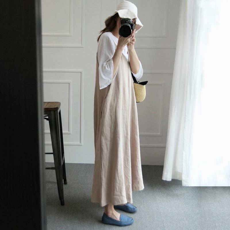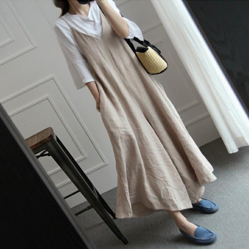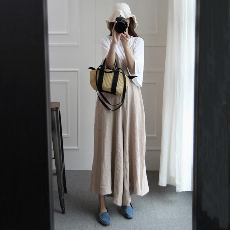 Kvinnor Solid Lösa Breda Ben Casual Linne Ärmlösa Jumpsuits