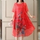 Kvinnor Vintage Sommartryckt Kortärmad Klänning
