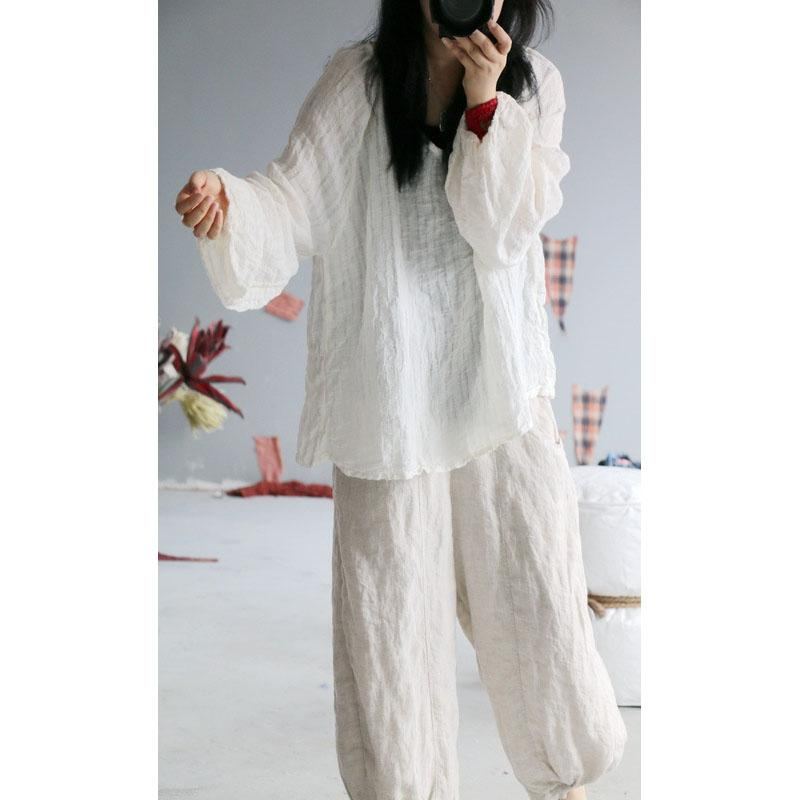 Lös Retro Linne Pullover Skjorta För Kvinnor