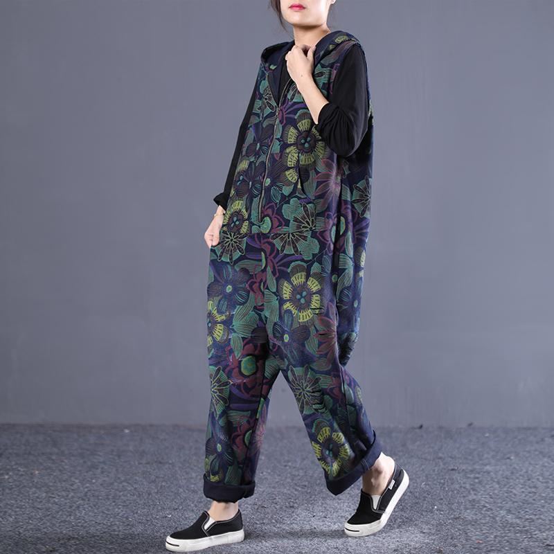 Lös Vintage Printed Zipper Jumpsuit