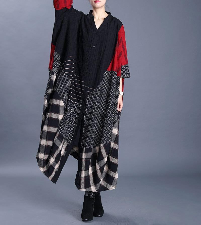 Patchwork Bomull Linne V-hals Lång Kappa
