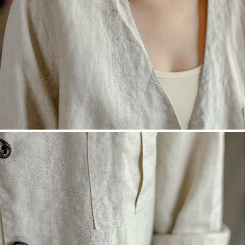 Plus Size Retro Solid V-ringad Höstlinneskjorta