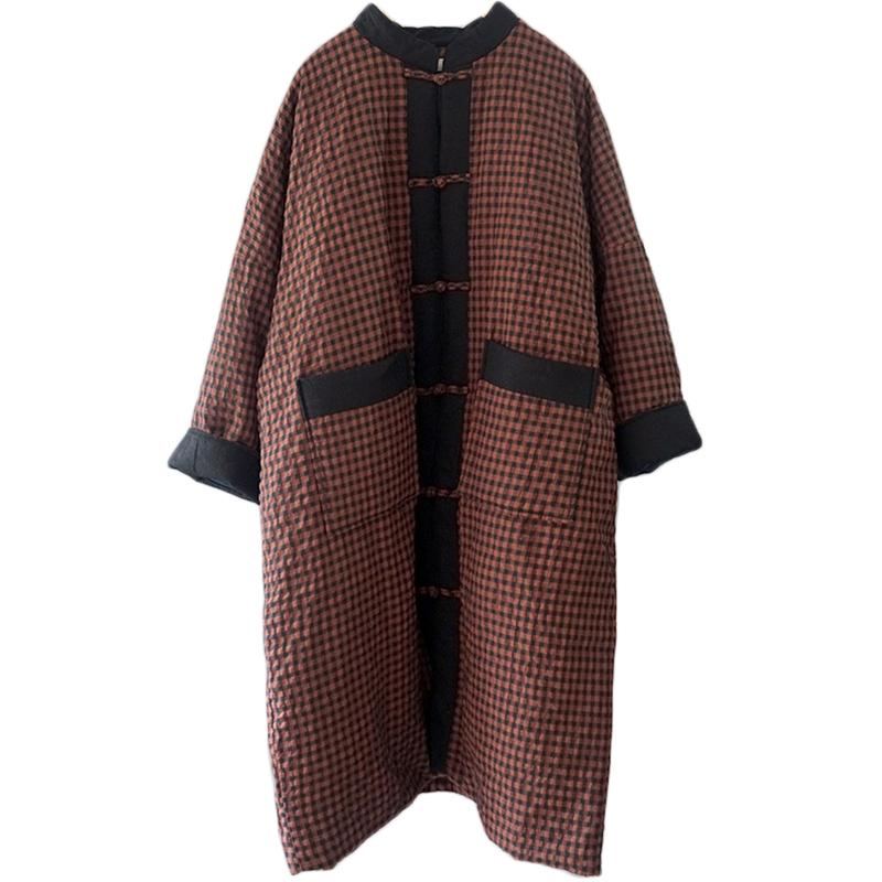 Retro Bomullslinne Pläd Lång Lång Vinterkappa