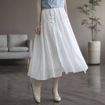 Retro Sommar Bomull Linne Blommig A-linje Kjol
