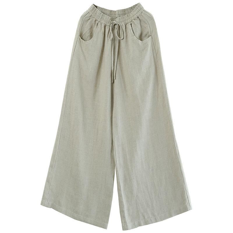 Rik Linne Casual Lösa Elastiska Byxor Med Dragsko Vid Ben