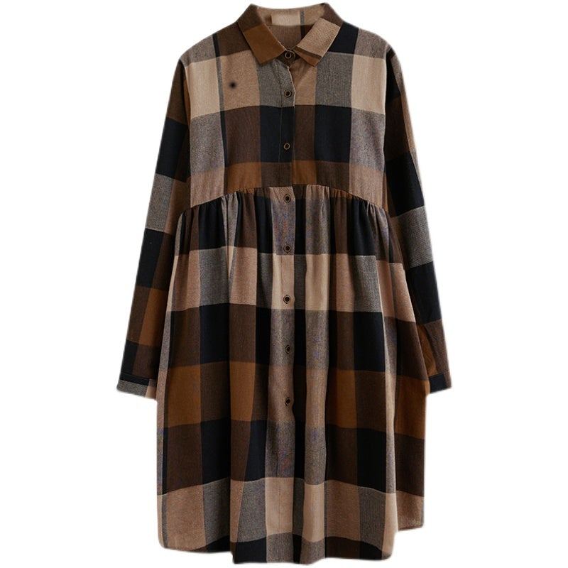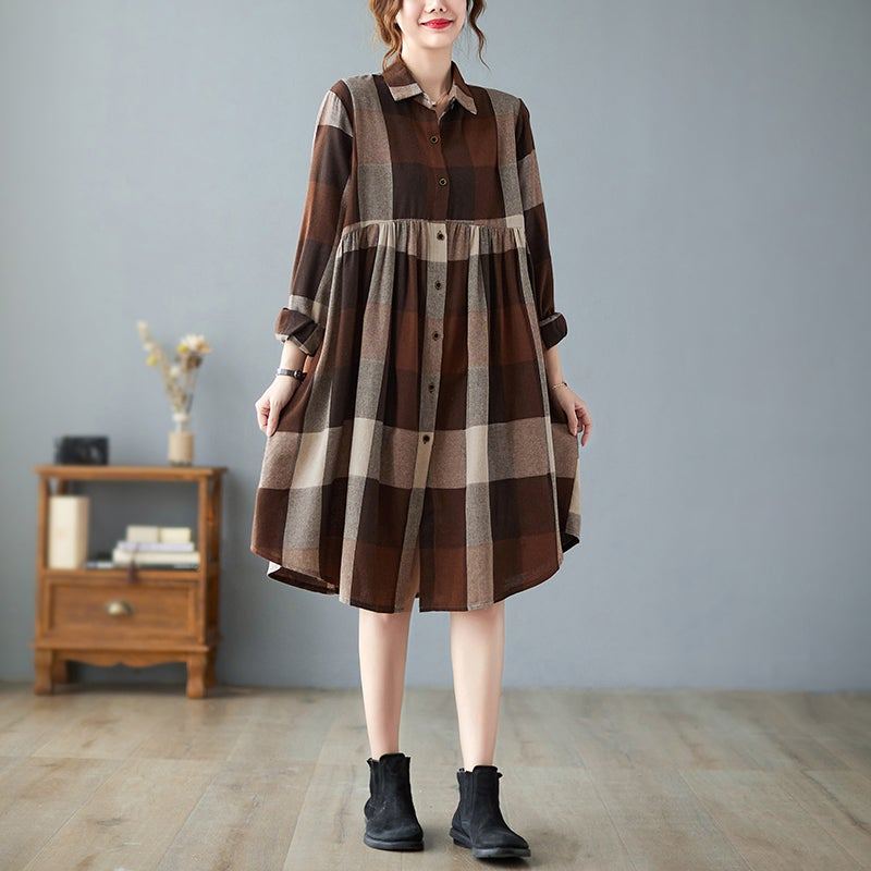Spring Plus Size Bomull Linne Rutig Klänning
