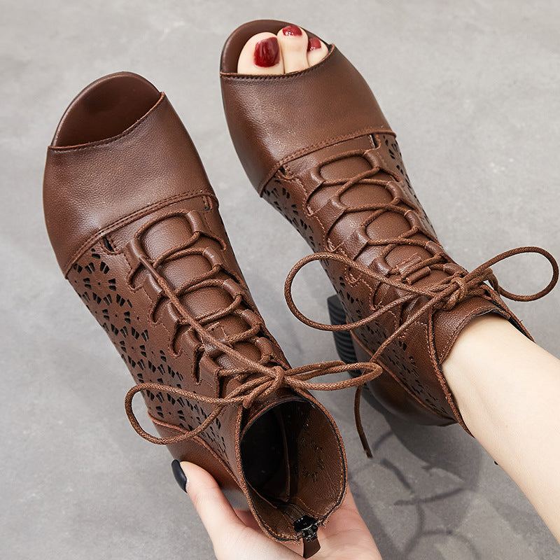 Summer Hollow Läder Retro Wedge Casual Sandaler