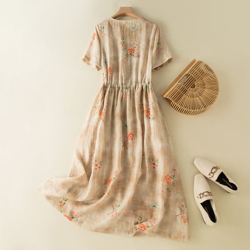 Summer Vintage Blommig Linne Klänning