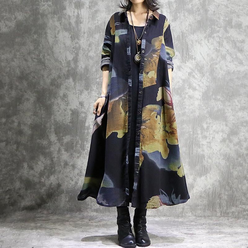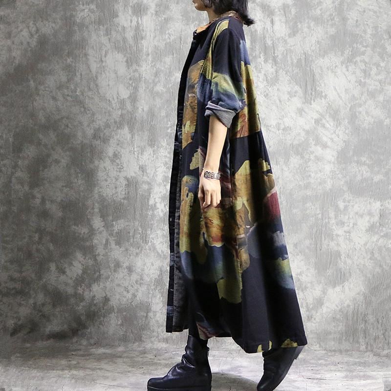 Vintage Bomull Linnetryckt Lös Lång Kofta