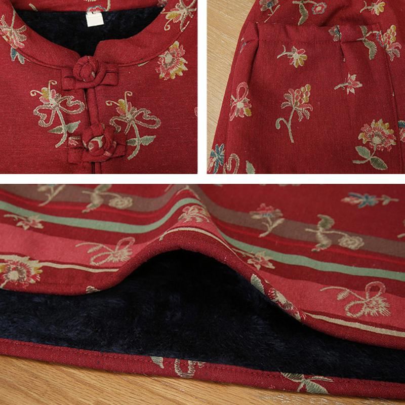 Vinter Tjock Plysch Blommig Retro Bomull Linne Klänning