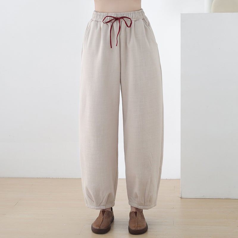 Vinterplysch Dam Retro Lösa Linne Byxor Med Vida Ben